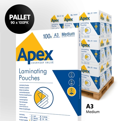 Apex Laminating Pouches A3 Medium Duty - Pallet [90 x 100PK]